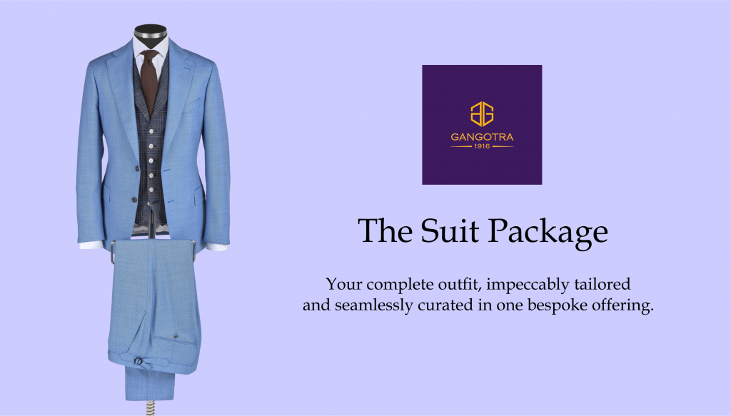 At Gangotra 1916, Nottingham’s premier destination for Made to Measure suits and bespoke tailoring, our complete suit package brings together a custom tailored suit, shirt, tie and shoes, all crafted to your exact specifications. Whether you’re preparing for a formal affair, a refined business engagement or a laid back celebration, every element is curated to complement your style, silhouette and story.